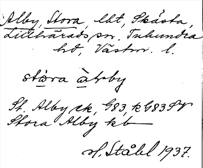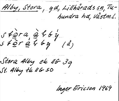 Information om ortnamnet Alby, Stora