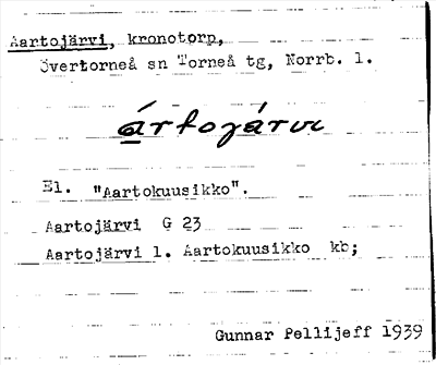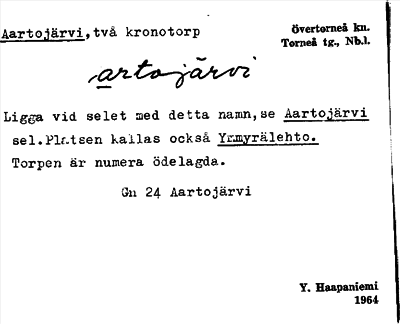 Information om ortnamnet Aartojärvi