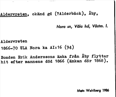 Information om ortnamnet Aldervreten