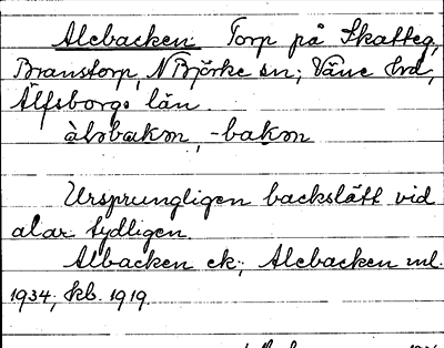 Information om ortnamnet Alebacken