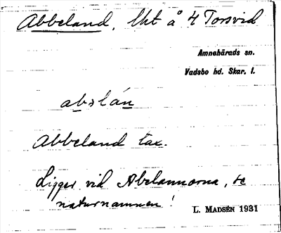 Information om ortnamnet Abbeland