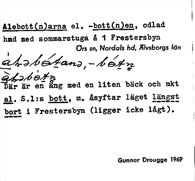 Information om ortnamnet Alebottnarna el. Alebottnen