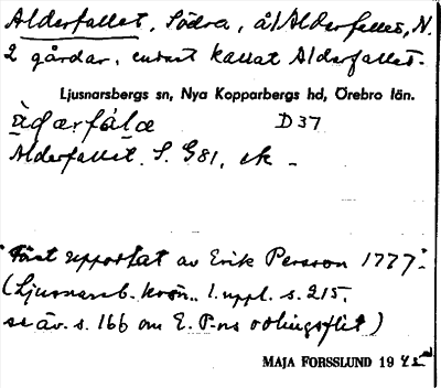 Information om ortnamnet Alderfallet