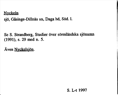 Information om arkivposten Nyckeln, även Nyckelsjön