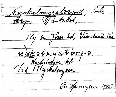 Information om ortnamnet Nyckelmyrstorpet