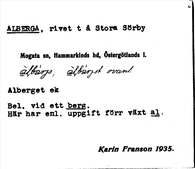 Information om ortnamnet Alberga