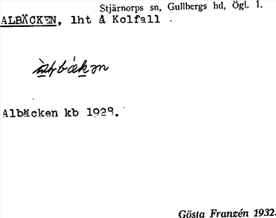 Information om ortnamnet Albäcken