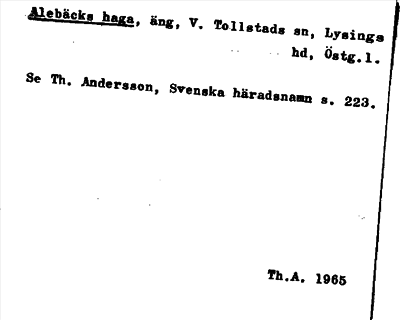 Information om ortnamnet Alebäcks haga