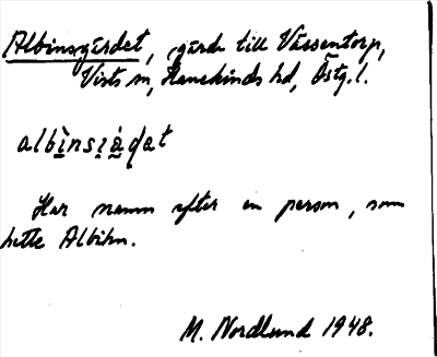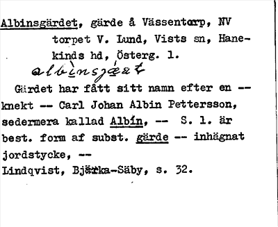 Information om ortnamnet Albinsgärdet