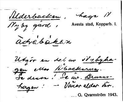 Information om ortnamnet Alderbacken se Nybyhagen, Åbackarna, Brunnshagen