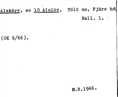 Information om ortnamnet Alekärr, se 10 Alslöv