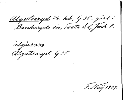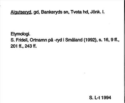 Information om ortnamnet Algutseryd