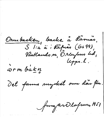 Information om arkivposten Ormbacken