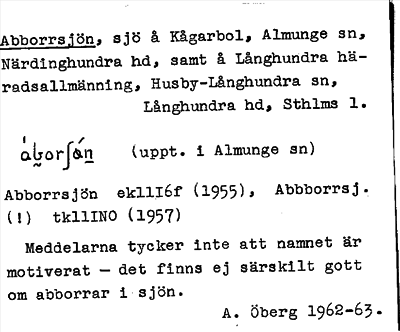 Information om ortnamnet Abborrsjön