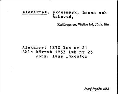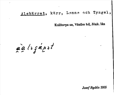 Information om ortnamnet Alekärret