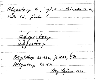 Information om ortnamnet Algestorp