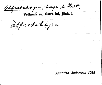 Information om ortnamnet Alfredshagen
