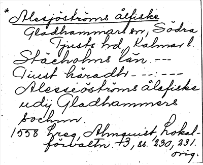 Information om ortnamnet Alesjöströms ålfiske