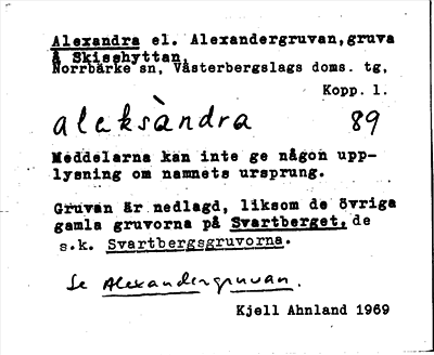 Information om ortnamnet Alexandra el. Alexandersgruvan
