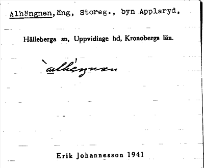 Information om ortnamnet Alhängnen