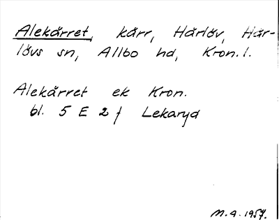 Information om ortnamnet Alekärret