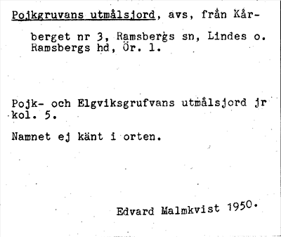 Bild på arkivkortet för arkivposten Pojkgruvans utmålsjord