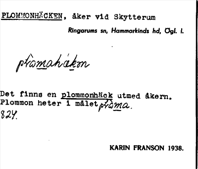 Information om ortnamnet Plommonhäcken
