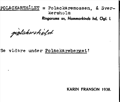 Information om ortnamnet Polackarehålet = Polackaremossen