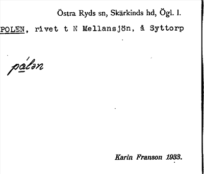 Östra Ryds sn, Skärkinds hd, Östergötlands län, Östergötland