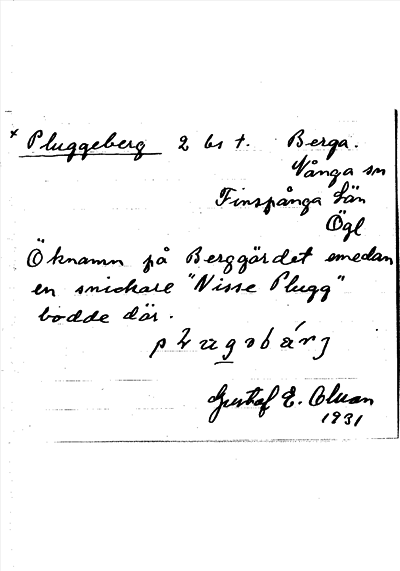 Information om ortnamnet Pluggeberg