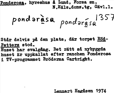 Information om arkivposten Ponderosa