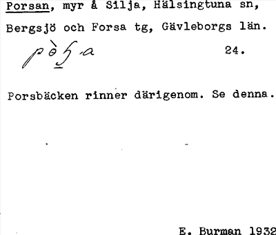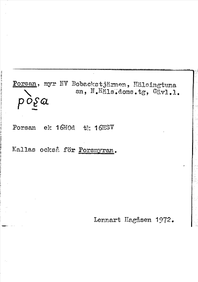 Information om ortnamnet Porsan