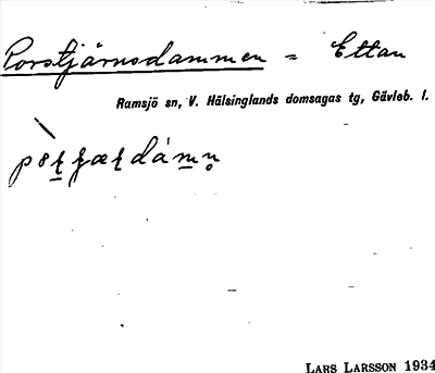 Information om ortnamnet Porstjärnsdammen = Ettan