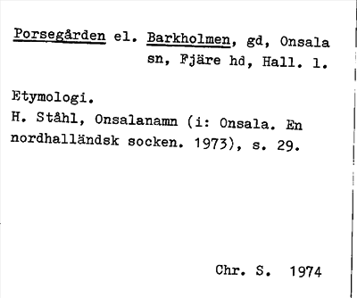 Information om ortnamnet Porsegården el. Barkholmen
