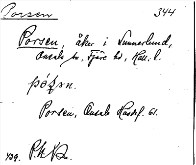 Bild på baksidan av arkivkortet för arkivposten Porsen