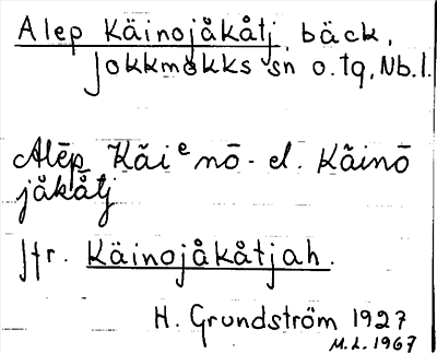 Information om Alep Käinojåkåtj, jfr Käinojåkåtjah