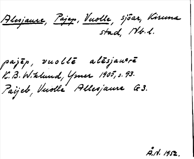 Information om ortnamnet Alesjaure, Pajep, Vuolle