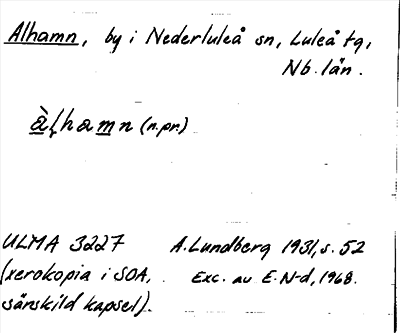 Information om ortnamnet Alhamn