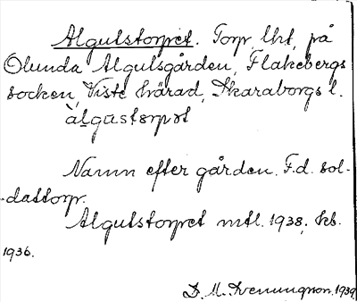 Information om ortnamnet Algulstorpet