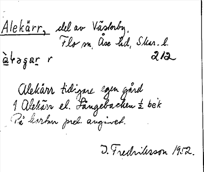 Information om ortnamnet Alekärr