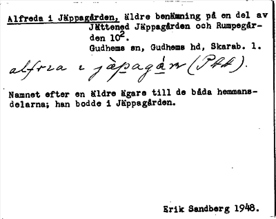 Information om ortnamnet Alfreda i Jäppagården