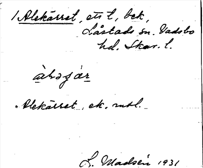 Information om ortnamnet Alekärret