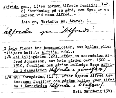 Information om ortnamnet Alfrida