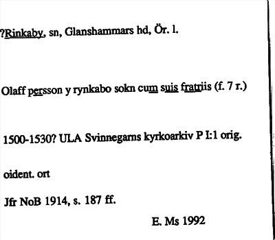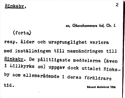 Information om ortnamnet Rinkaby