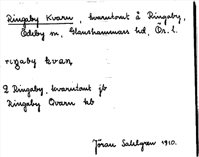 Information om ortnamnet Ringaby kvarn