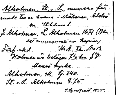 Information om ortnamnet Alholmen, St. o. L
