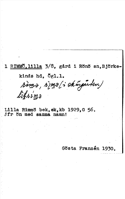 Information om ortnamnet Rimmö, lilla