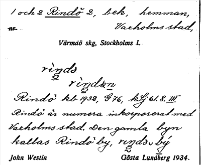 Information om ortnamnet Rindö