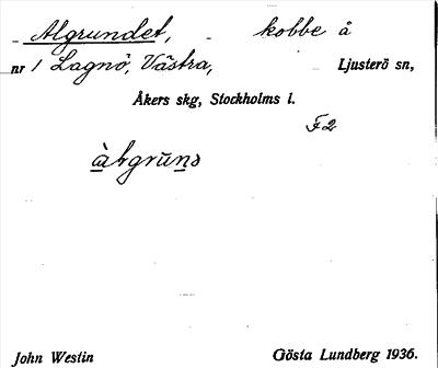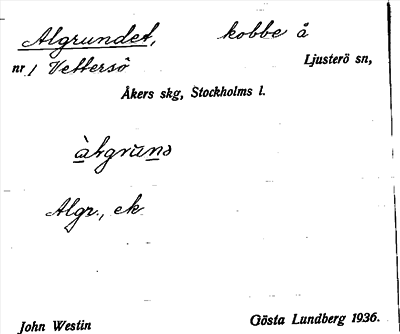Information om ortnamnet Algrundet