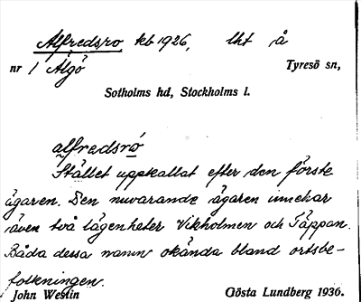 Information om ortnamnet Alfredsro